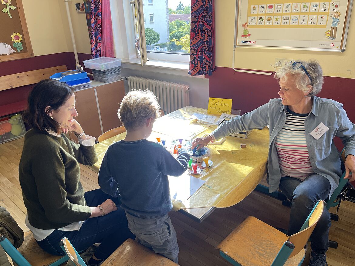 Die Kinder erkundeten den Schulhof, das Schulgebäude und die Klassenräume mit den vielen, liebevoll aufgebauten Bastel- und Lernstationen, während die Erwachsenen bei individuellen Gesprächen mit der Schulleitung, den Lehrkräften, Mitarbeitenden und FESH-Eltern einen Einblick in das christlich geprägte Bildungs- und Betreuungsangebot gewannen.