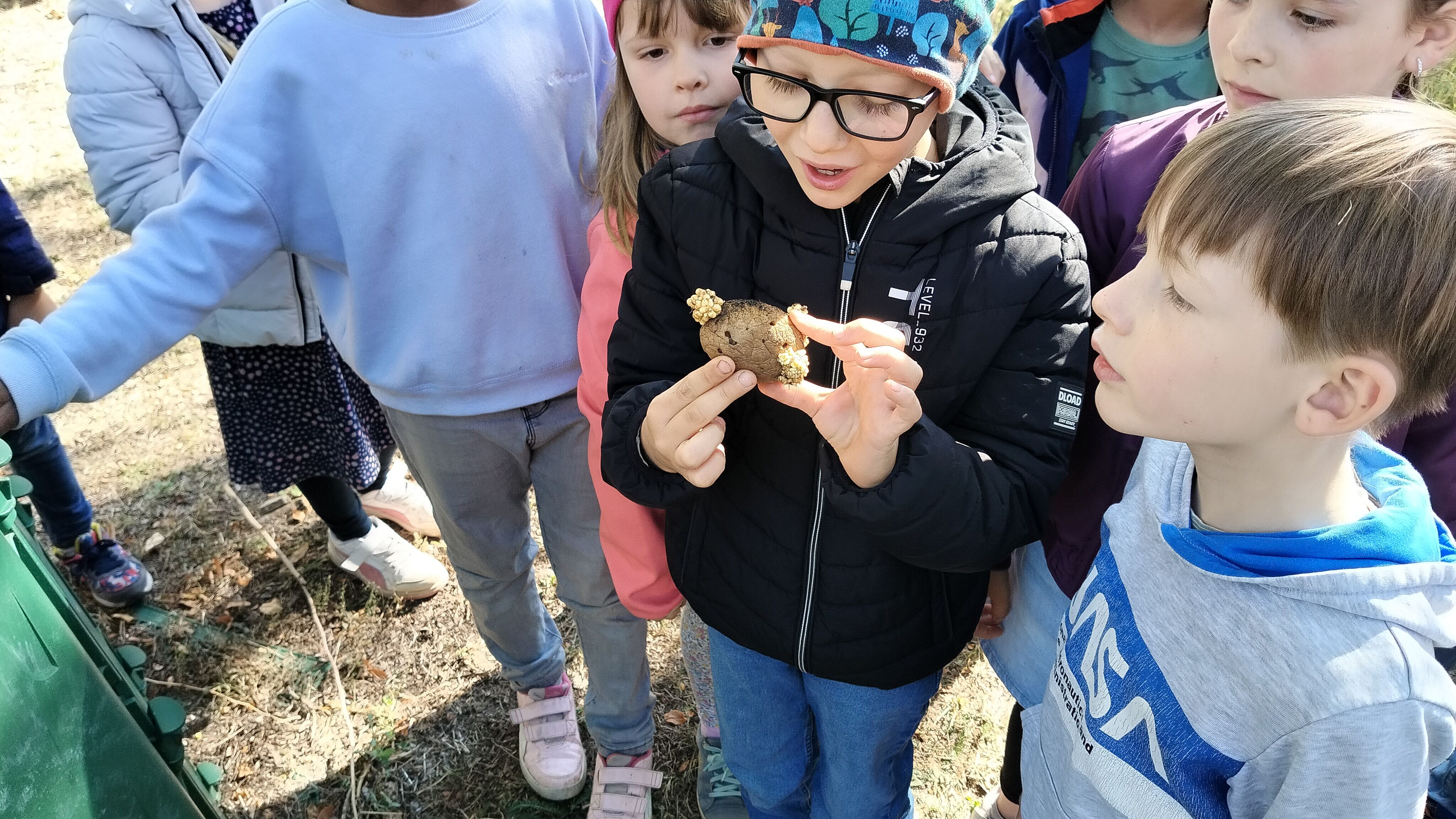 Passend zum Gedicht von Georg Britting "Goldene Welt", welches aktuell im Deutschunterricht behandelt wird, durften die Kinder der Klasse 2a im Schulgarten die Natur genießen und sogar die herbstliche Ernte einholen.