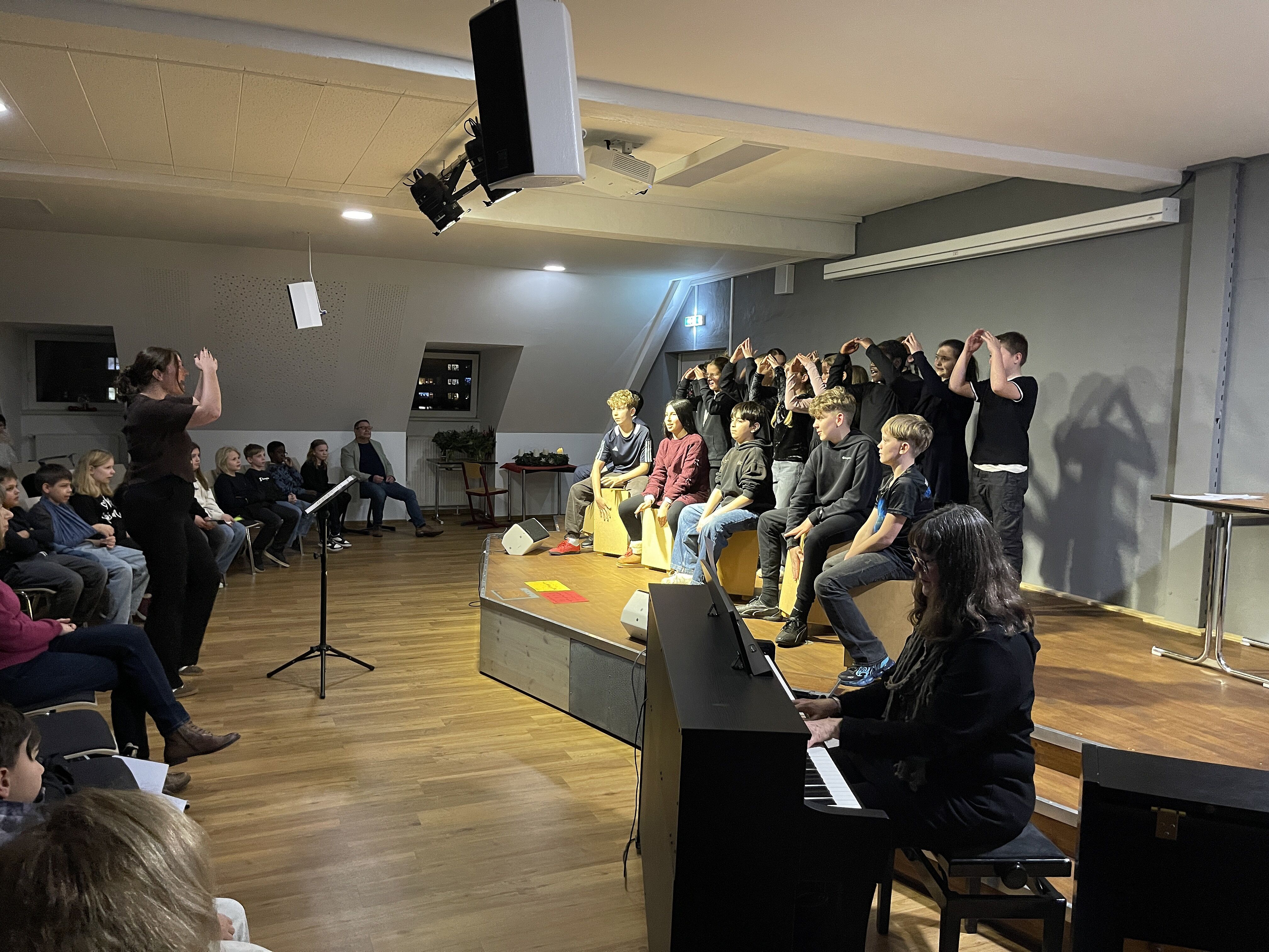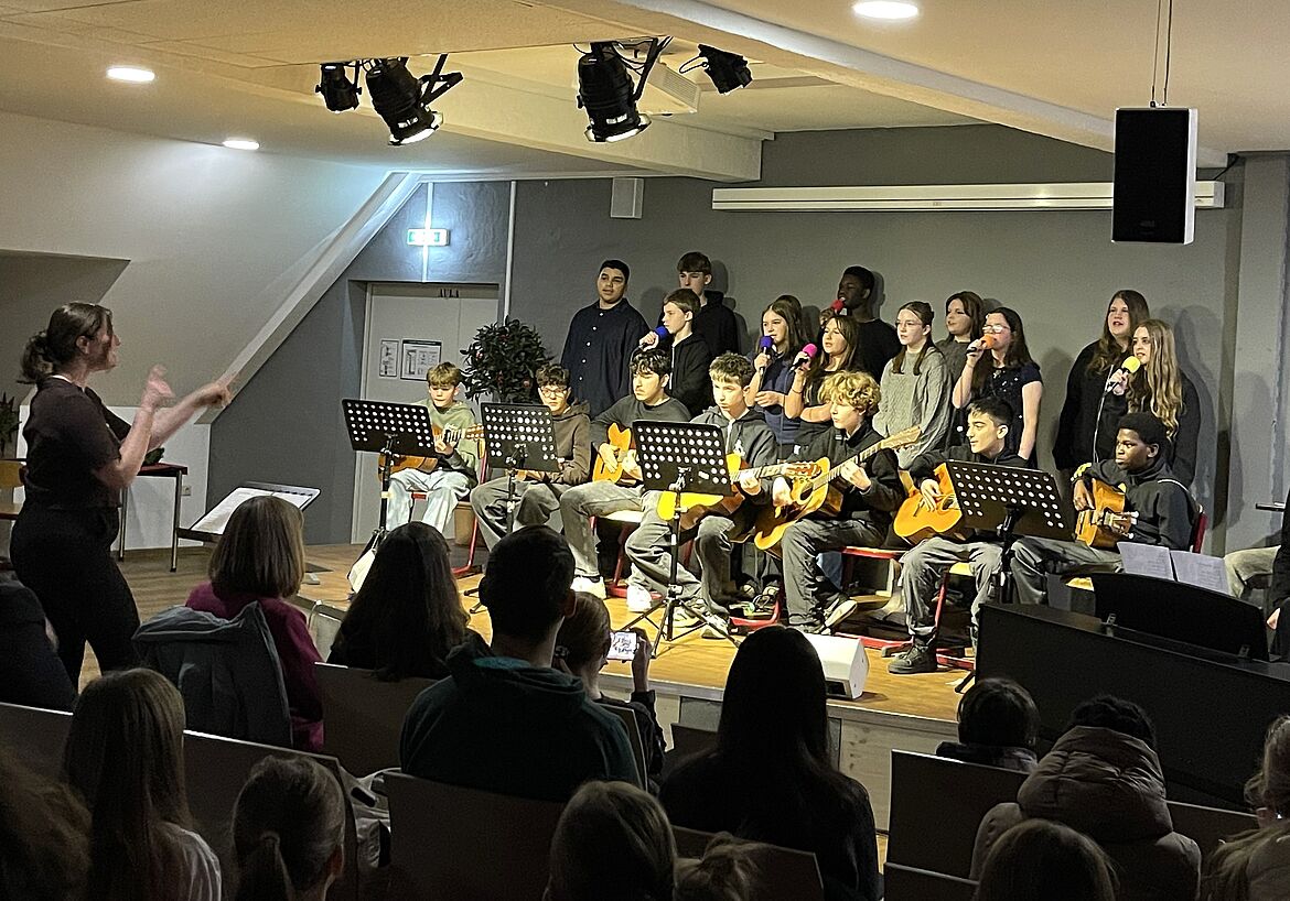 Der Abend in der FESH wurde für alle Gäste in der vollbesetzten KGS-Aula ein großartiges Erlebnis. Die Schülerinnen und Schüler sangen, tanzten, führten ermutigende Theaterstücke auf Deutsch und Englisch auf und spielten einzeln, gruppen- und klassenweise mit ihren Instrumenten. Mit der Auswahl und der Interpretation ihrer Stücke wollten sie zeigen, dass es im Leben nicht um das Materielle geht, sondern – wie zu Weihnachten – um Ruhe, Frieden und Geborgenheit. Ein herzlicher Dank gilt allen Mitwirkenden (H.Nikolov)