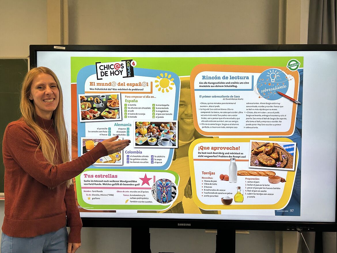 Wir arbeiten mit dem Spanischbuch “¡Apúntate!”, das viele interaktive Übungen bietet – aber genauso wichtig ist es, die Sprache und Kultur mit allen Sinnen zu erfahren. Gemeinsam singen wir spanische Lieder, tanzen, erfinden lustige Rollenspiele oder erstellen selbst kleine Videos. So kommt keine Langeweile auf und die Schülerinnen und Schüler trauen sich schneller, Spanisch auch frei zu sprechen. Besonders beliebt sind unsere „kulinarischen Stunden“, in denen wir z. B. Tortilla, Churros oder Guacamole zubereiten und die spanischsprachige Welt gemeinsam schmecken.