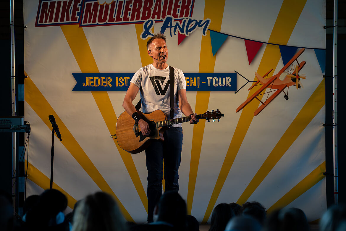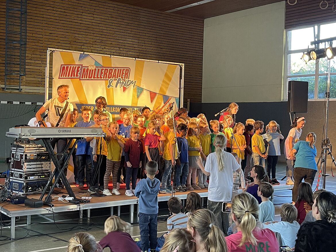Mike Müllerbauer und Andy (www.muellerbauer.de) gelang es mit ihren kindgerechten und populären Liedern, toller Bühnentechnik und szenischem Spiel in wechselnden schicken Outfits vom Glitzersakko bis zur Superpowerjacke, die Kinder und Erwachsenen zu begeistern.