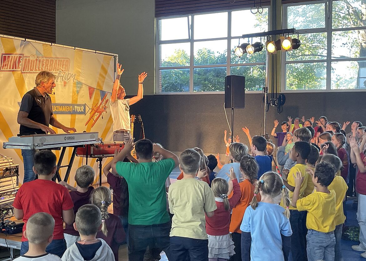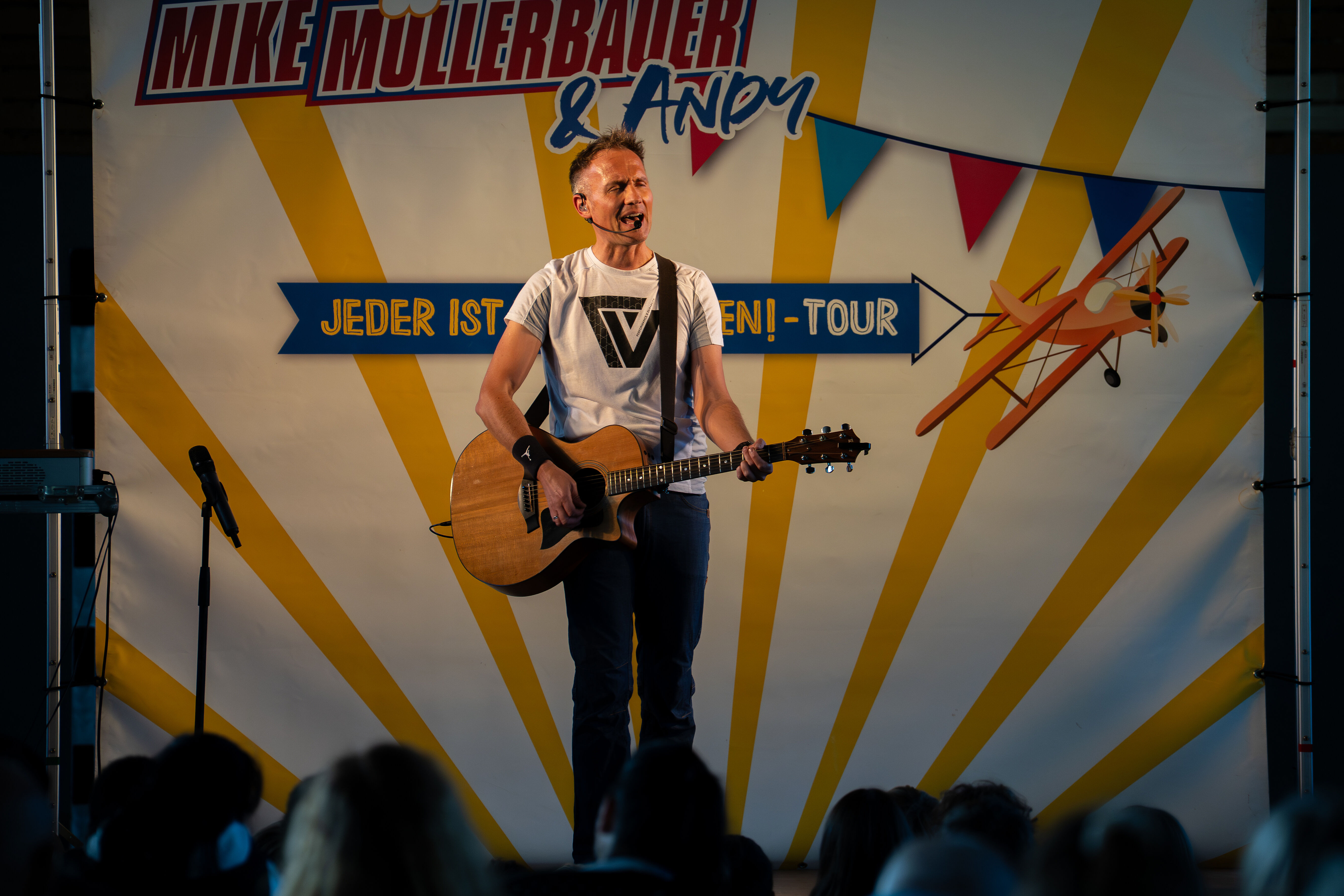 Begeistert und voller Freude sangen, klatschten und tanzten die vielen kleinen und großen Gäste, als der im deutschsprachigen Raum bekannte christliche Liedermacher Mike Müllerbauer mit seinem Bühnenpartner Andy am 24. September 2025 ein Konzert in der FESH gab.