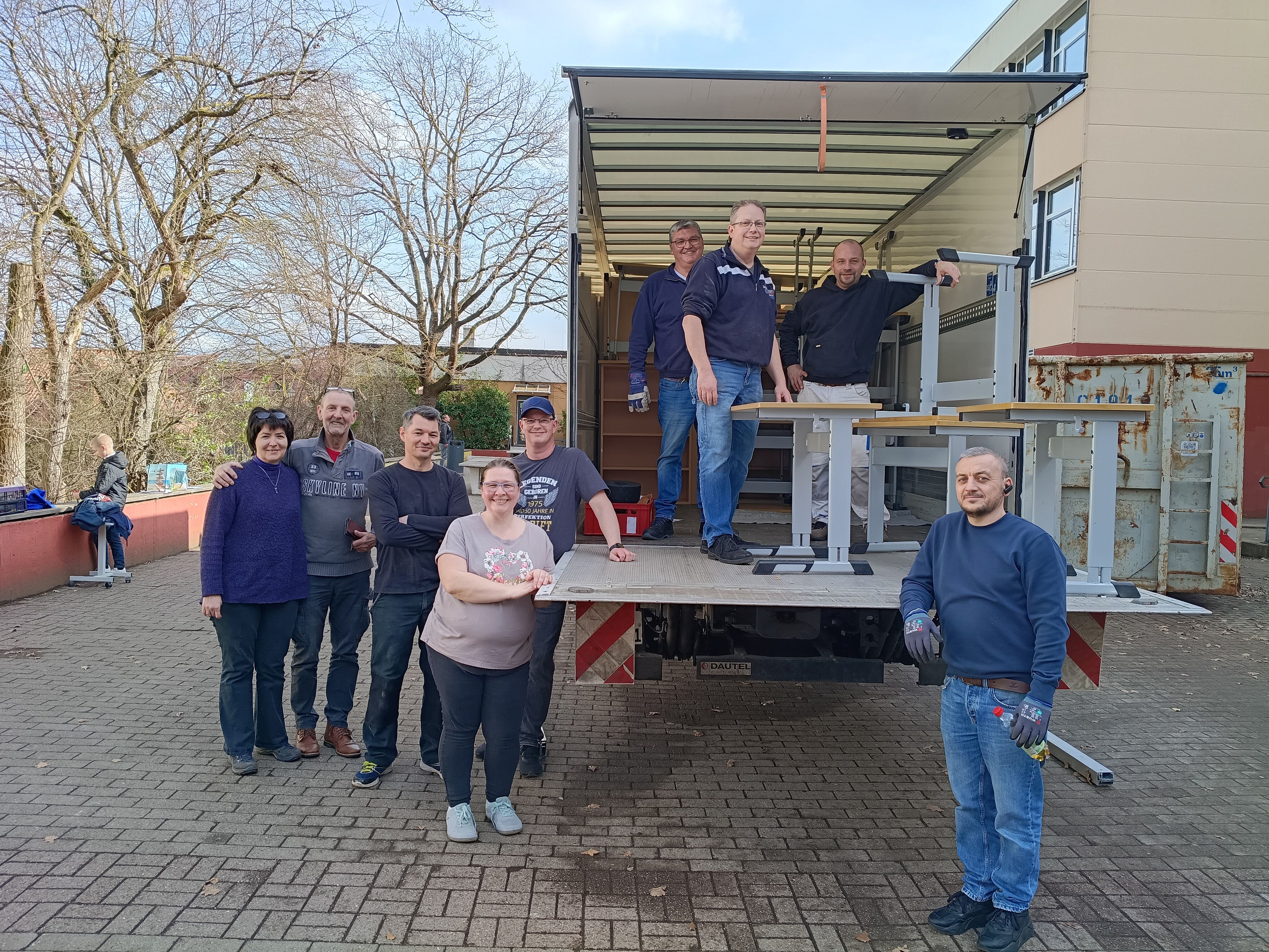 Bei tollem Frühlingswetter haben sich einige FESH-Eltern an einem Februarsamstag 2026 getroffen, um bestens erhaltenes Schulmobiliar aus einer anderen Schule für unsere FESH abzuholen.