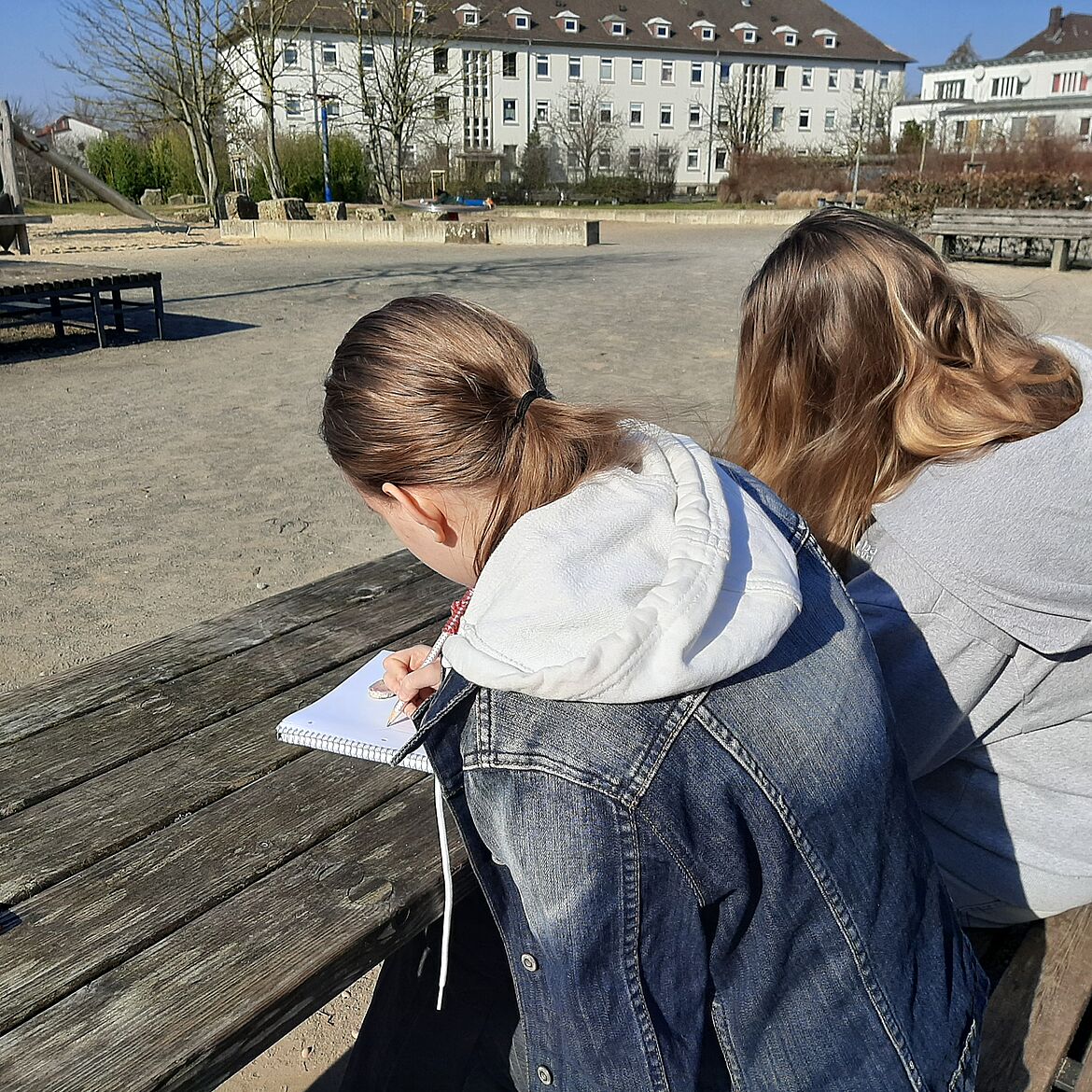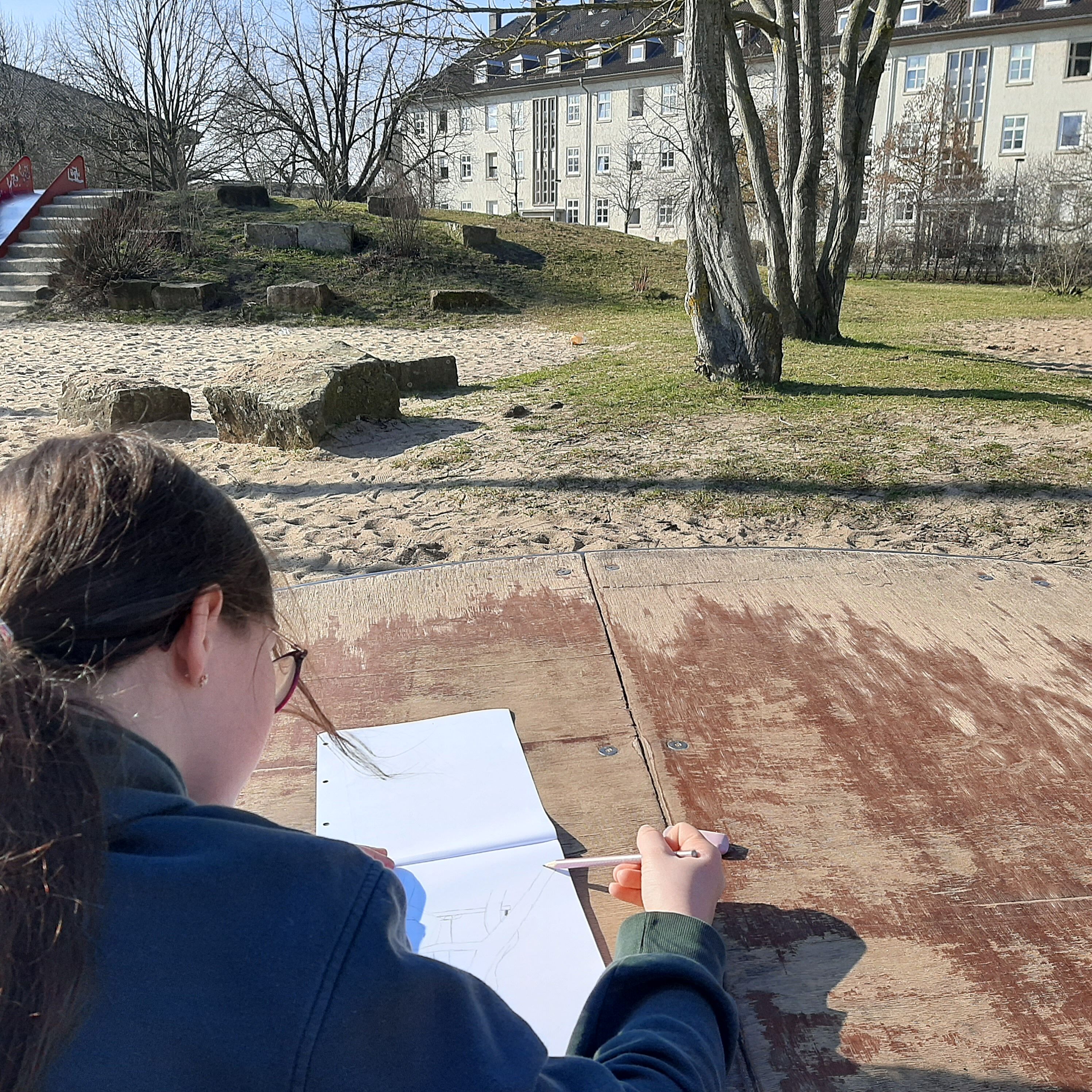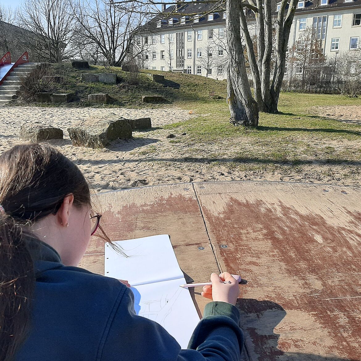 Bei bestem Frühlingswetter darf der Unterricht auch mal nach draußen verlagert werden, wenn es sich ergibt - so wie kürzlich im Kunstunterricht der Klasse 8b.